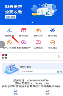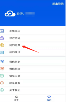支付成功 登录成功后,点击“我要缴费”或点击“我的”—“我的缴费”。  |